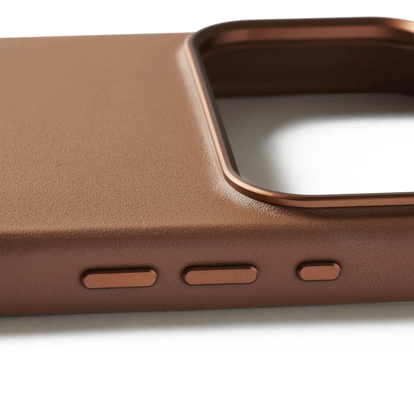Sidoknapparna är noggrant tillverkade av maskinbearbetad metall för optimal respons. De ger ett mycket tillfredsställande klickande och är färgade för att matcha det fylliga Tan-lädret. Denna omsorg om detaljerna ligger i linje med vår minimalistiska designfilosofi. Fodral till iPhone 17-modellerna har exakta, maskinbearbetade metallknappar som förbättrar både hållbarhet och respons.